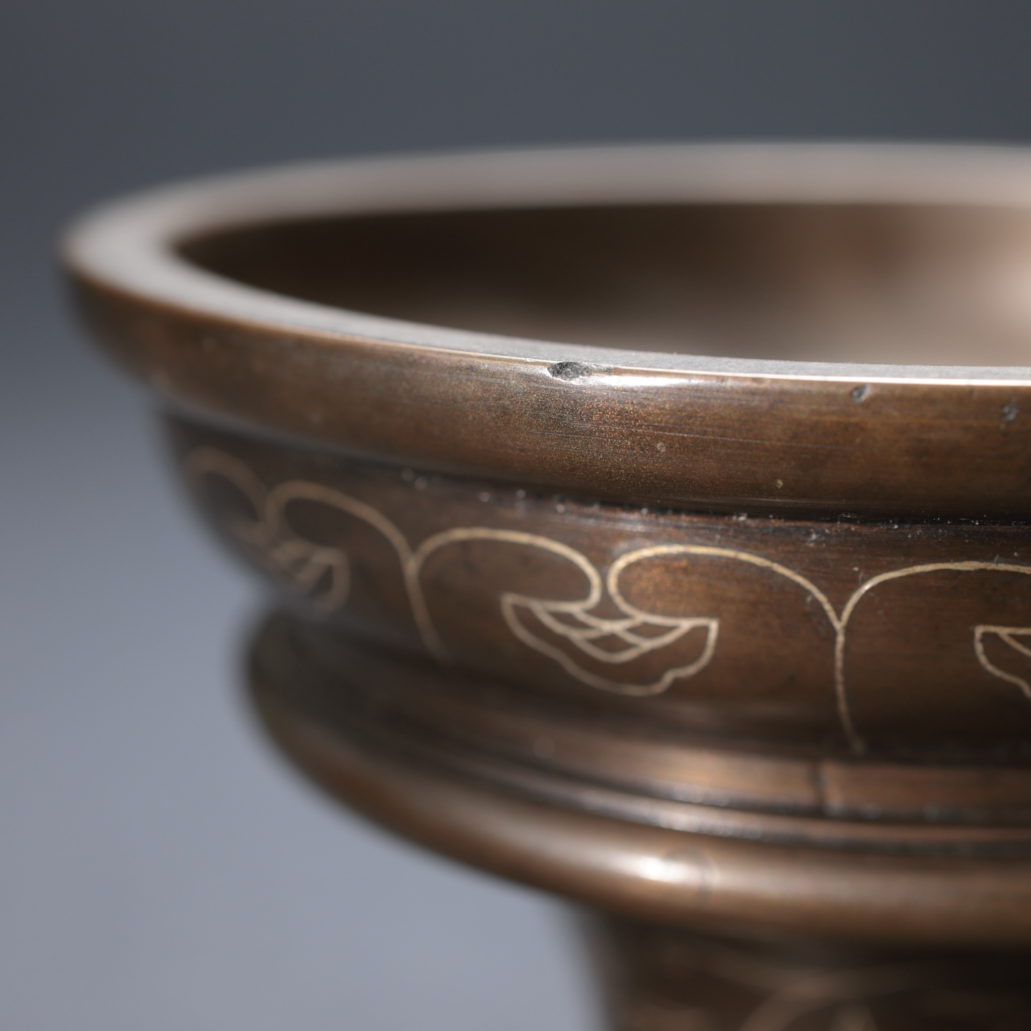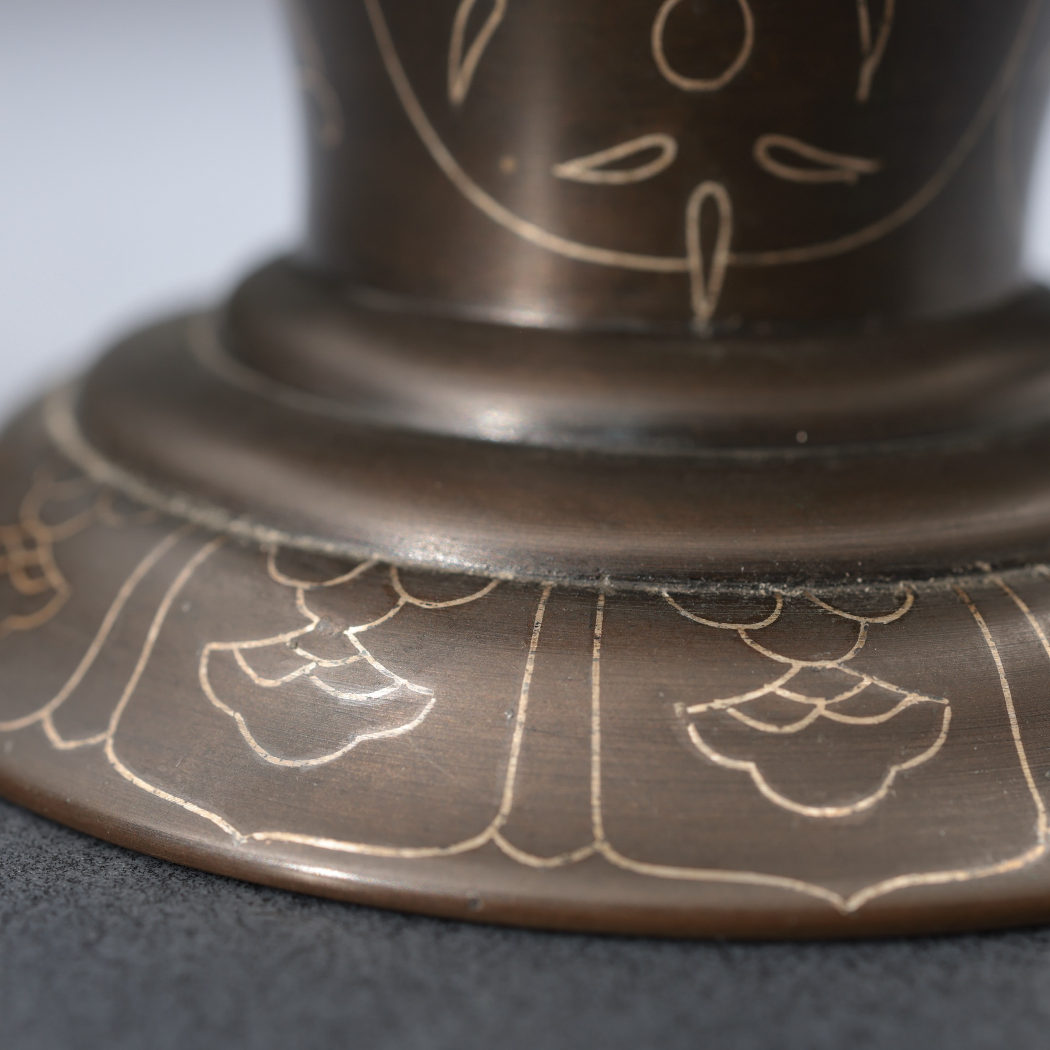 落ち着いた金属肌に銀象嵌の繊細なきらめきが静かな華やぎを添えています。