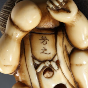 芳之作 犬と人物根付