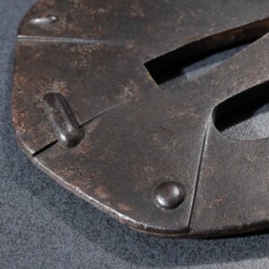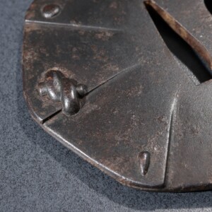 意匠がたいへんユニークで、陣笠を模したものと思われる鐔です。