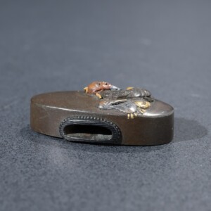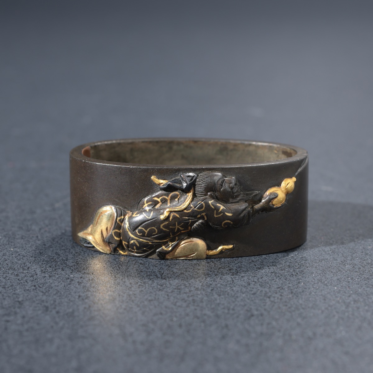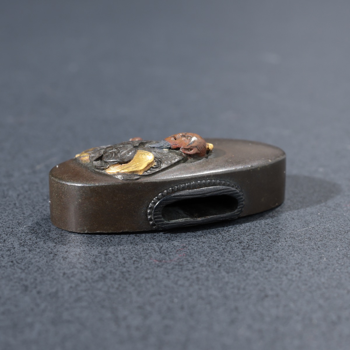 さまざまな素材を用いて、動きのある賢人の姿を巧みに表現した、趣向豊かな縁頭です。